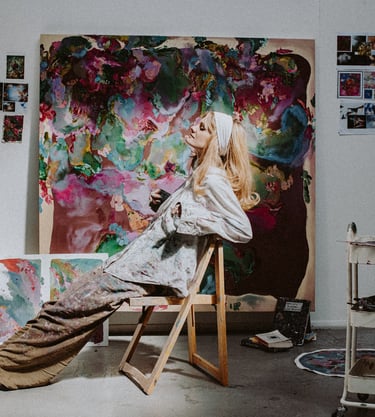 Annie Ashwell is a Contemporary Painter working in London. Using predominantly oils, her work is a visual unravelling of feeling within space and time. The contrasting use of conscious colour and freeform, emotive brush strokes is an attempt to unpick harmony within the world we live in today; one that is anxiety-driven and divergent of stillness.