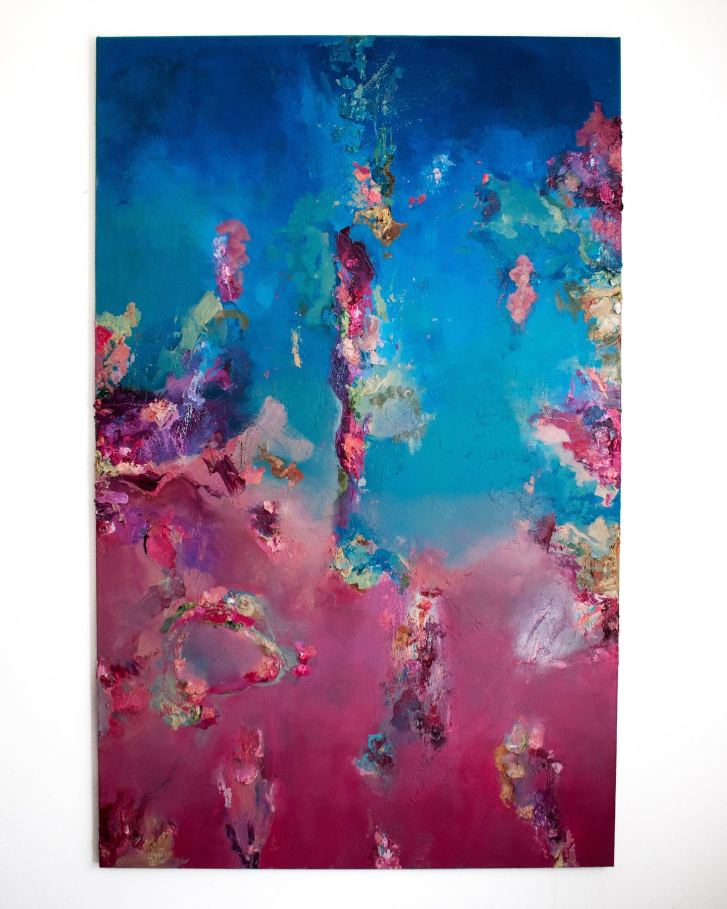 A visceral journey through the tumultuous landscape of contemporary existence, my oil on canvas series reflects the rawness of navigating an uncertain world through determined mark-making. Rendered with a pandemonium of vivid colours and expressive marks, the accompanying use of linseed oil aims to emphasise both gravitational and unstructured, free-flowing elements. I endeavour to seek the limitless potential of paint through relentless scraping, eliminating layers as well as building them up.