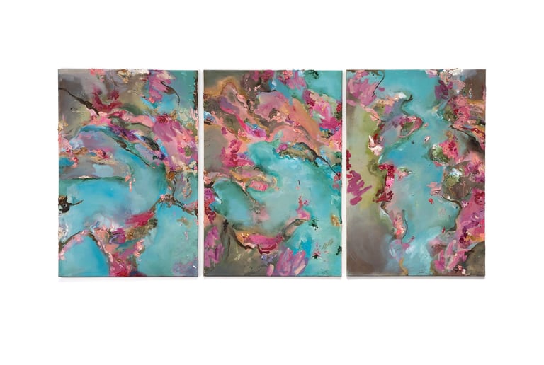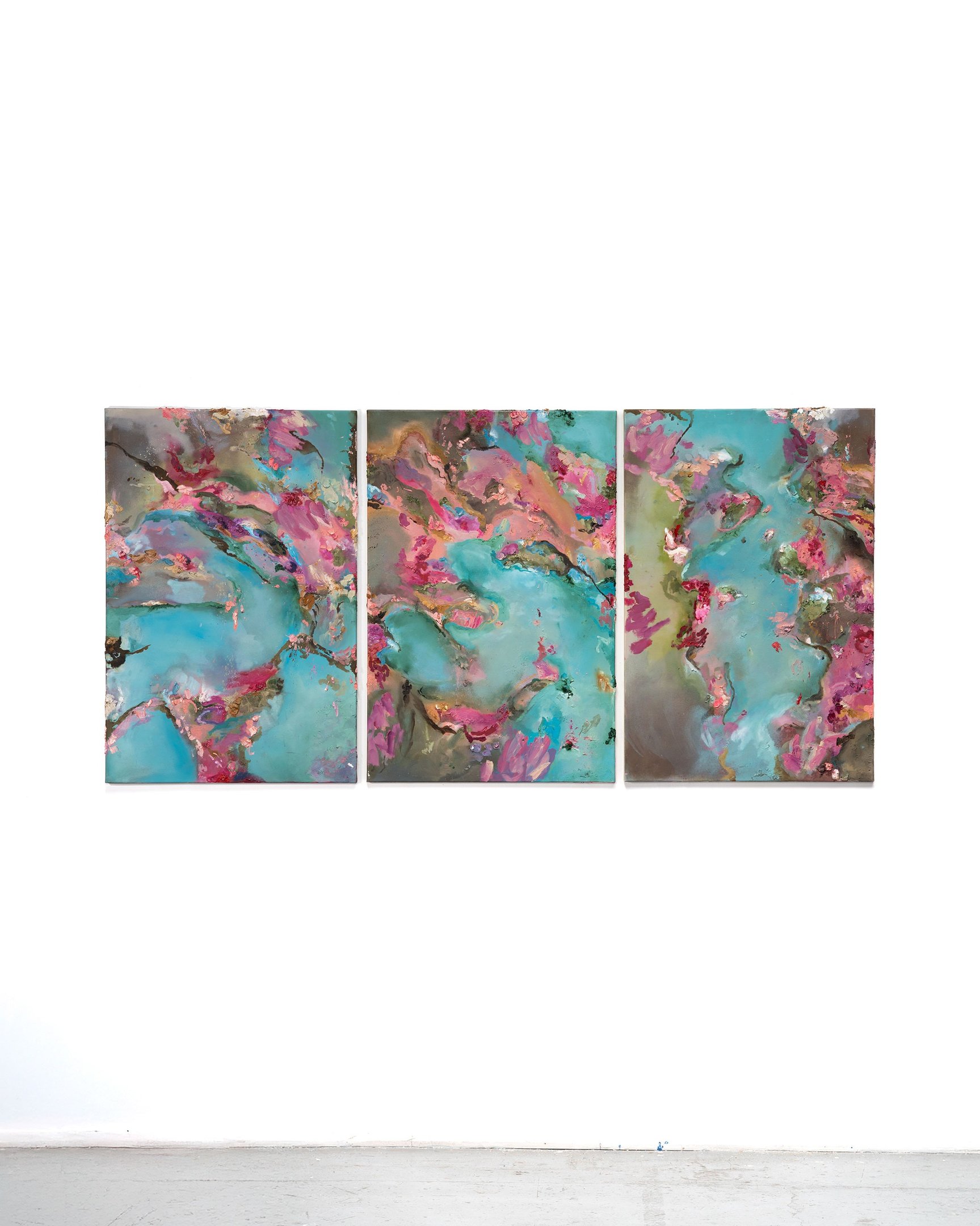 Serenity and surrender, 72" x 32", each panel is 24" x 36", oil on canvas, 2024