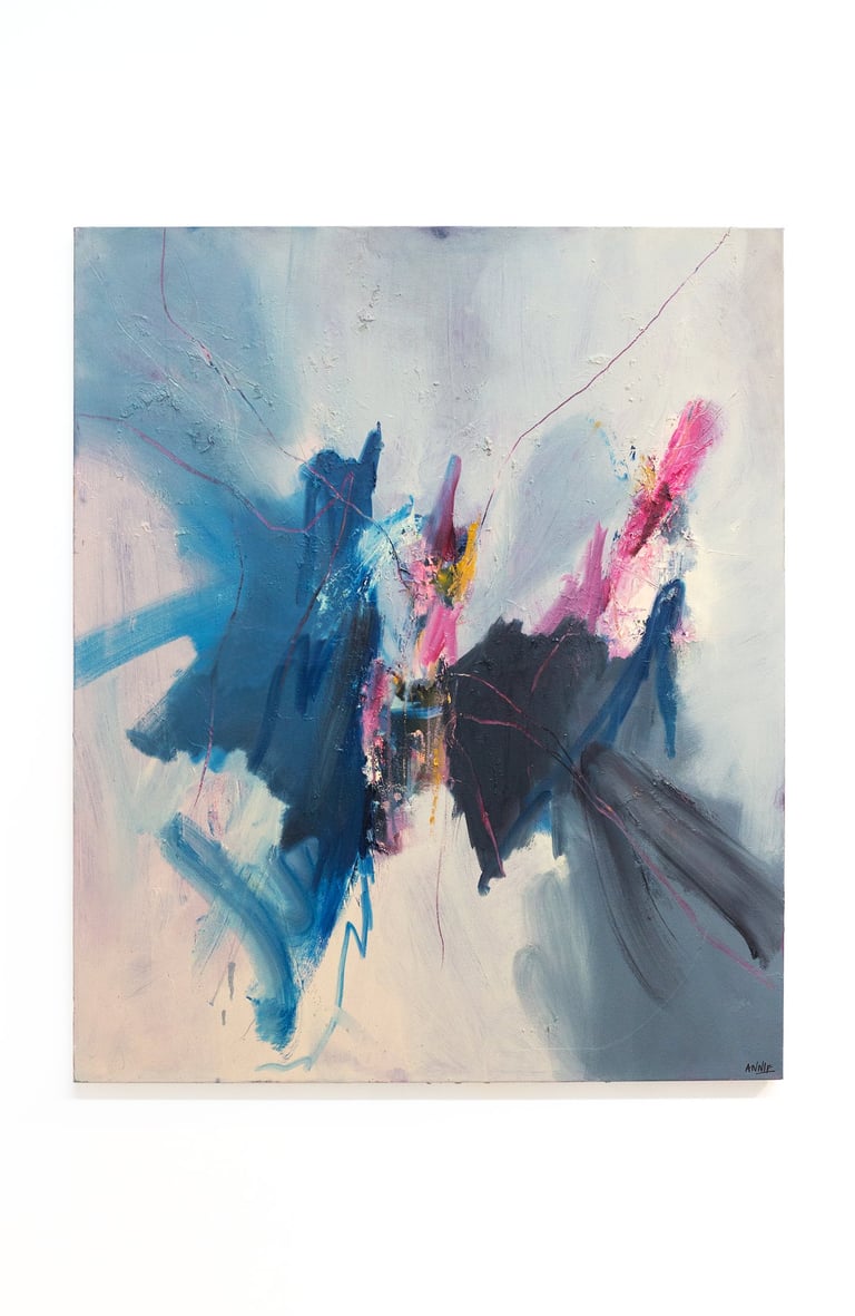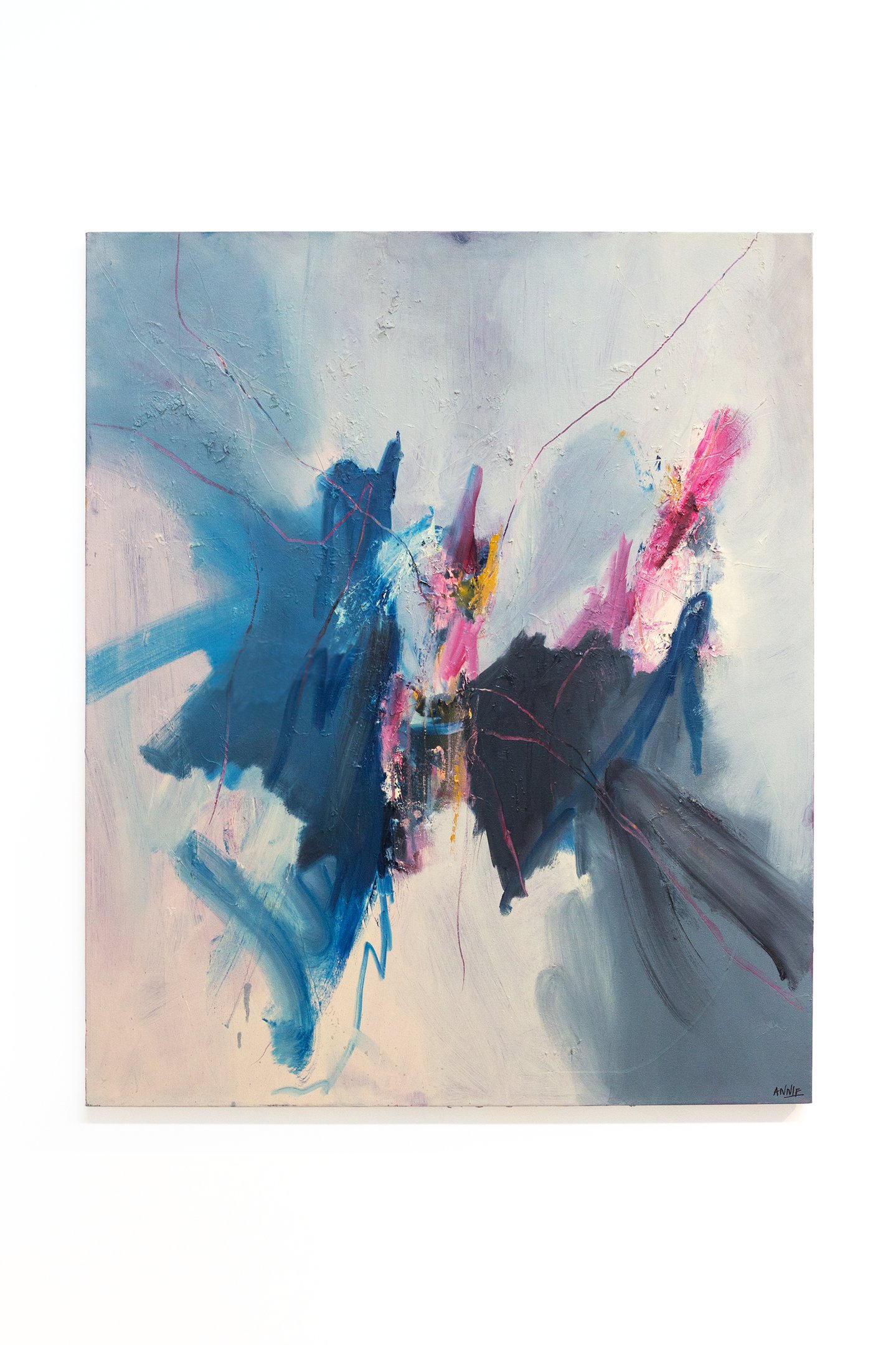 Chaos in the Calm (2020) was the first painting where I really started playing with subtraction and addition in paint. I was reading a lot of Amy Sillman at the time, especially where she talks about painting as “eliminating and destructing… I am happy if you see works as beautiful and uplifting, but they are also tough objects that I have struggled with.” That really stuck with me. I think that tension between beauty and struggle is something I’m always drawn to.