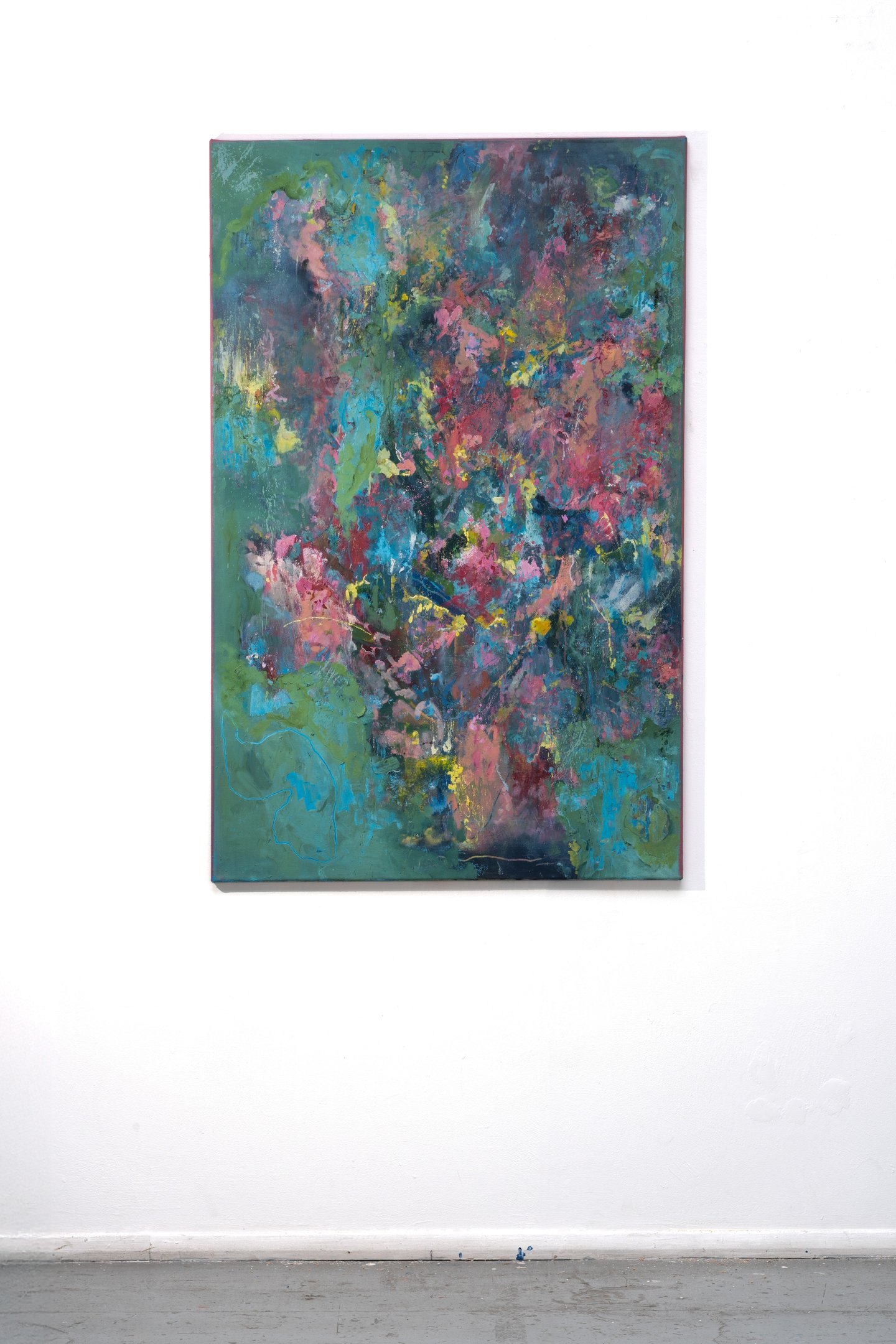 A visceral journey through the tumultuous landscape of contemporary existence, my oil on canvas series reflects the rawness of navigating an uncertain world through determined mark-making. Rendered with a pandemonium of vivid colours and expressive marks, the accompanying use of linseed oil aims to emphasise both gravitational and unstructured, free-flowing elements. I endeavour to seek the limitless potential of paint through relentless scraping, eliminating layers as well as building them up.